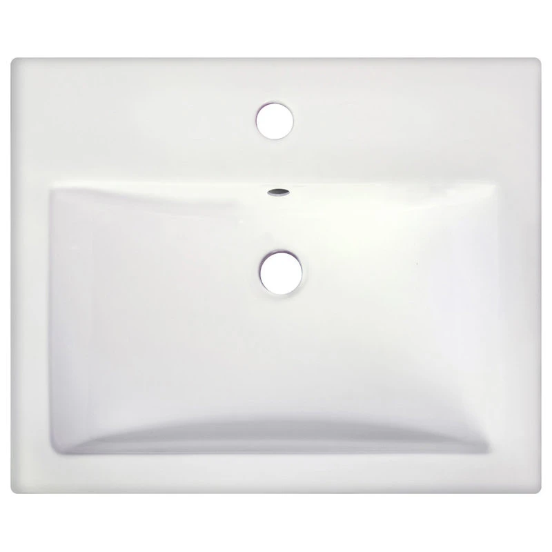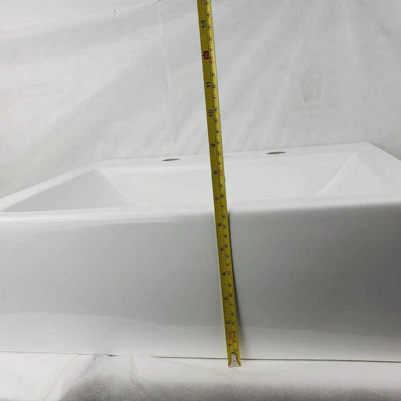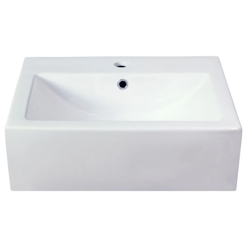 20.75-in. W Semi-Recessed White Bathroom Vessel Sink For 1 Hole Center Drilling THIS PRODUCT INCLUDE(S): 1x bathroom vessel sink in white color (20310). This bathroom vessel sink belongs to the xena farmhouse series. This bathroom vessel sink features a rectangle shape with a modern style. This product is made for semi-recessed installation. DIY installation instructions are included in the box. This bathroom vessel sink is designed for a 1 hole faucet and the faucet drilling location is on the center. This bathroom vessel sink features 1 sink. This bathroom vessel sink is made with ceramic. The primary color of this product is white and it comes with chrome hardware. Smooth non-porous surface; prevents from discoloration and fading. Double fired and glazed for durability and stain resistance. 1.75-in. standard USA-Canada drain opening. 20.75-in. Width (left to right). 17.25-in. Depth (back to front). 6.5-in. Height (top to bottom). All dimensions are nominal. This product can usually be shipped out in 1 day. Quality control approved in Canada. Each box on your order is physically opened-up and inspected to make sure only the highest quality product is shipped. We take and store photos of every single quality audit of every single order we ship. You can see them when you track your order on our website.