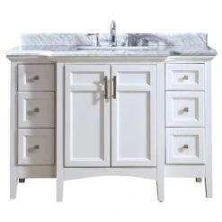 - Sink, countertop, vanity cabinet, handles and assembly hardware.