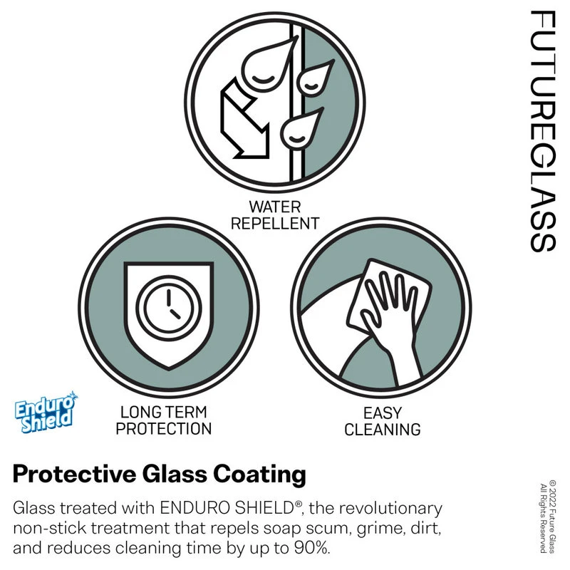 A Glass Warehouse frameless shower door can instantly make your bathroom look bigger and brighter, adding a fresh and modern feel yet having the versatility to complement any bathroom style. The GW range of frameless shower doors come with exceptional high quality brass fittings in a variety of beautiful finishes. The added advantage and beauty of a GW glass shower door over our competitors is the 78″ height. This is the standard height for all our panels, adding unmatched style and extra value to your frameless shower door purchase. GW glass exceeds the American and International Standard codes. All GW shower doors are coated with the revolutionary invisible treatment – Enduroshield. This treatment repels water, soap scum and grime, helping to reduce cleaning time by up to 90%. Enduroshield is a world forerunner in glass coatings and used by all major US glass manufacturers. Glass Warehouse is proud to present you quality products which will endure the test of time and we know you will love.