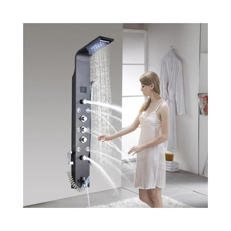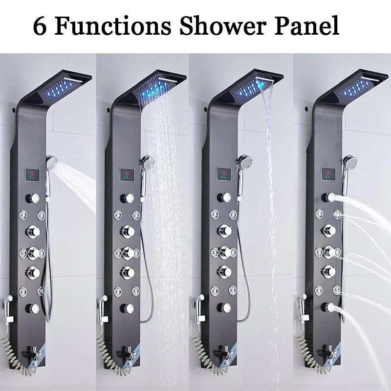 6 Stage Shower Function: Rainfall, Waterfall, Horizontal Massage Jets, Hand Shower, Tub Spout, Bidet. LED Shower Head for more relaxing atmosphere. LED Temperature Display powered by water flow (no electricity needed).