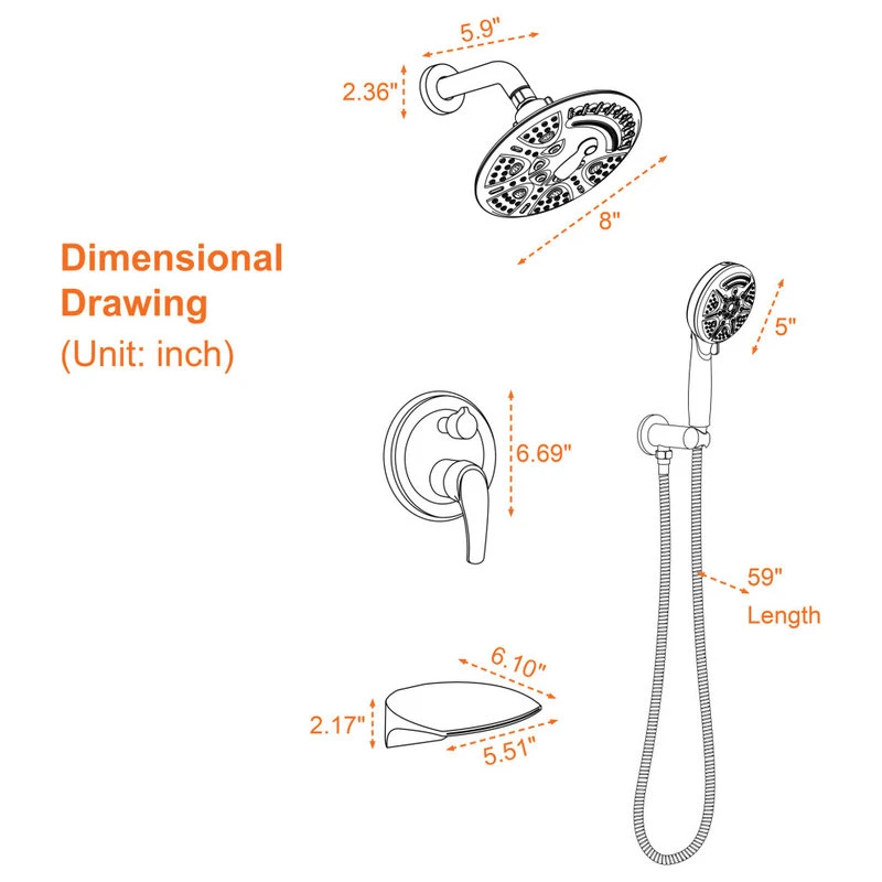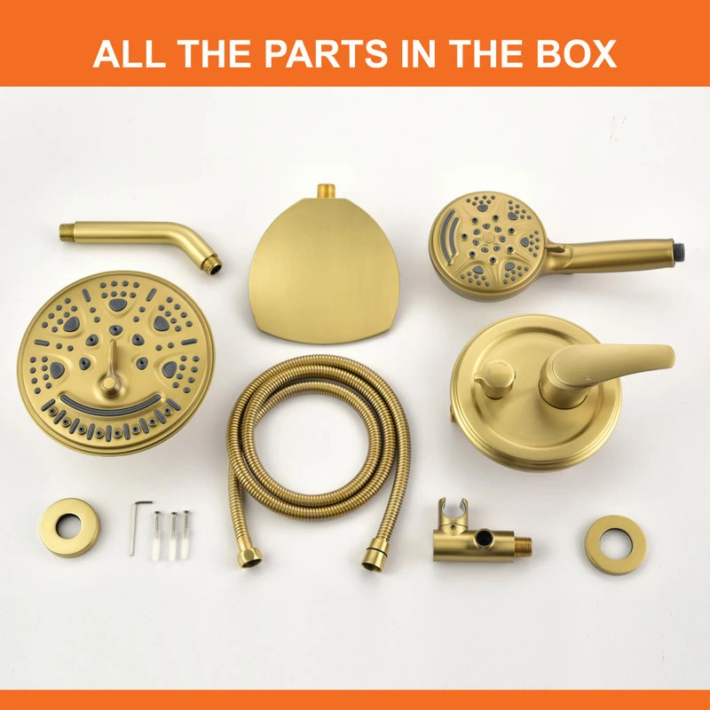 Be the first to review “6-Spray Patterns, 1.8 GPM 8″ Tub Wall Mount Dual Shower Heads, Brushed Gold” Cancel reply