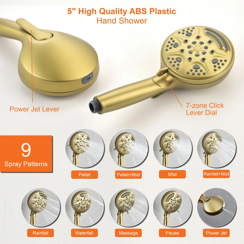 9-functions handheld shower head and single function rain shower head, 10 in. rain shower head and handheld shower head offer consistent powerful shower even under low water pressure