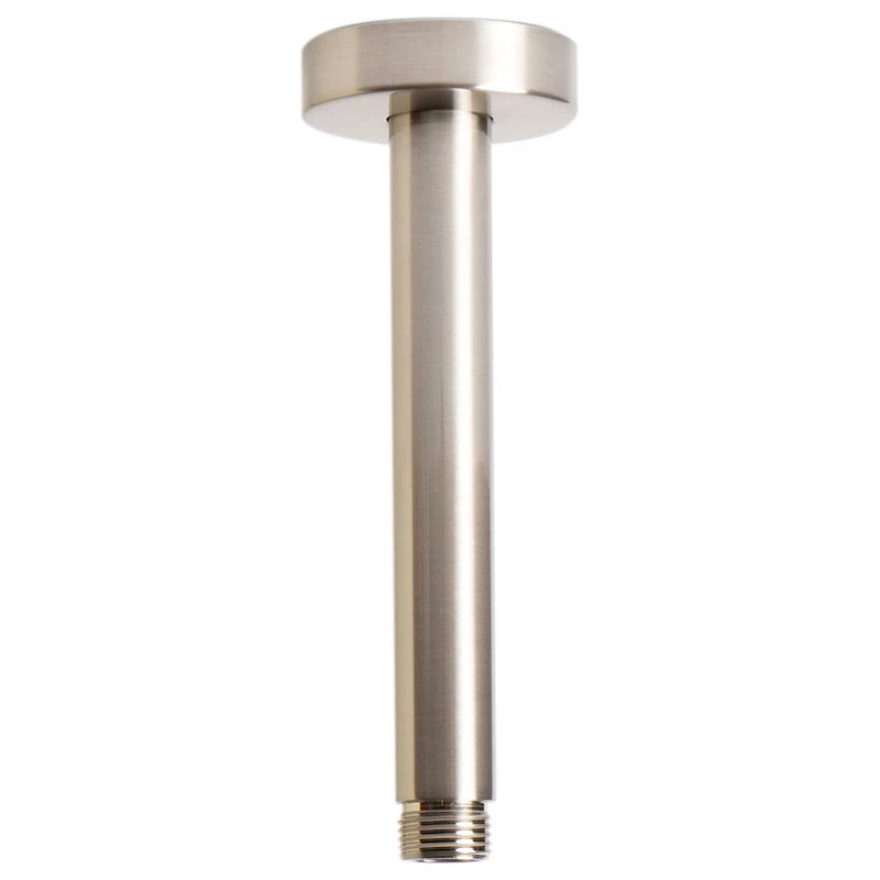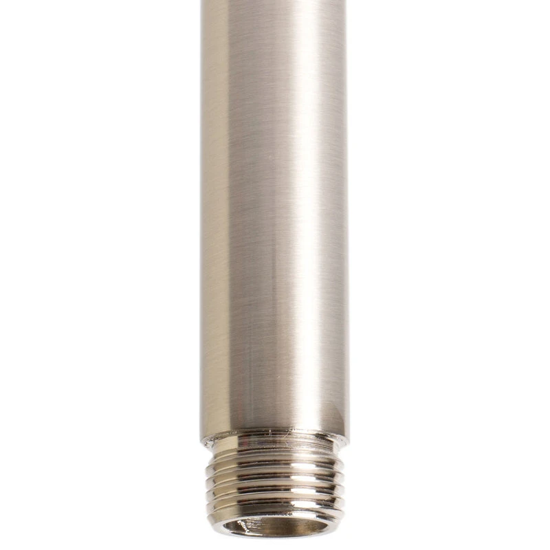 - Made of solid brass and coated in a brushed nickel finish. , Traditional round pipe design. Perfect for use with round rain shower heads. , 1/2″ NPT male threading at the bottom to the shower head and 1/2″ NPT female threading at the top, to connect to water supply.