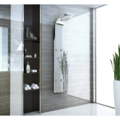 Echo 63.5″ 4-Jetted Shower Panel, Heavy Rain Shower, Spray Wand, Brushed Steel