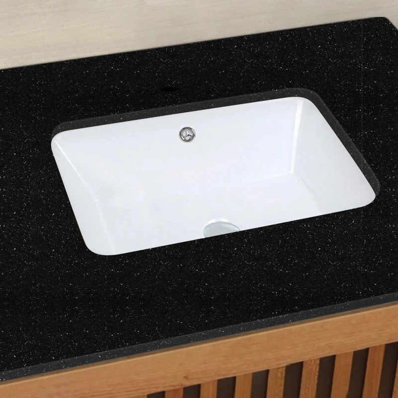 This vessel features a rectangle shape with a modern style. This product is made for undermount installation. DIY installation instructions are included in the box. This vessel is designed for a deck mount faucet and the faucet drilling location is on the deck mount. Comes with an overflow for safety. This vessel features 1 sink. This vessel is made with ceramic. The primary color of this product is white and it comes with chrome hardware. Smooth non-porous surface; prevents from discoloration and fading. Double fired and glazed for durability and stain resistance. 1.75-in. standard USA-Canada drain opening. 21.75-in. Width (left to right). 16-in. Depth (back to front). 7.5-in. Height (top to bottom). All dimensions are nominal. This product can usually be shipped out in 1 day. Quality control approved in Canada. Each box on your order is physically opened-up and inspected to make sure only the highest quality product is shipped. We take and store photos of every single quality audit of every single order we ship. You can see them when you track your order on our website. THIS PRODUCT INCLUDE(S): 1x vessel in white color (18088).