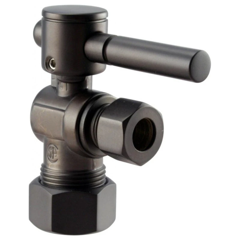 This Angle Stop with Lever Handle is the perfect compliment for sinks and toilets. It uses a 5/8 in. Compression Inlet (For 1/2 in. Copper pipe) with a 3/8 in. OD Compression outlet with nut and ferrule. The valve uses 1/4-turn closure for a positive seal. It is available in a variety of finishes.