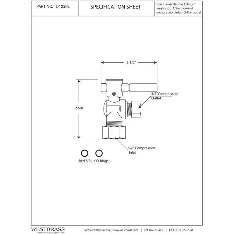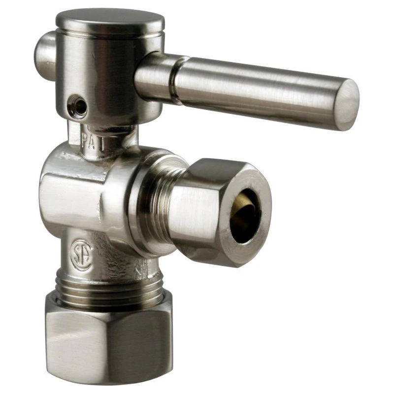 This Angle Stop with Lever Handle is the perfect compliment for sinks and toilets. It uses a 5/8 in. Compression Inlet (For 1/2 in. Copper pipe) with a 3/8 in. OD Compression outlet with nut and ferrule. The valve uses 1/4-turn closure for a positive seal. It is available in a variety of finishes.