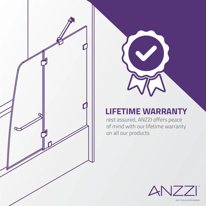ANZZI continues its tradition of innovative home design with the Pacific Series tub glass door. The ANZZI Pacific Series features a modern marriage of tempered, crystal clear, DECO-GLASS panels with stainless steel RHINO ALLOY approved hardware finish in beautiful brushed nickel. ANZZI’s own TSUNAMI GUARD shielding repels water and prevents fogging and moisture build up. With effortlessly wide opening functionality and cutting edge modern style ANZZI has what you need to build your dream shower.