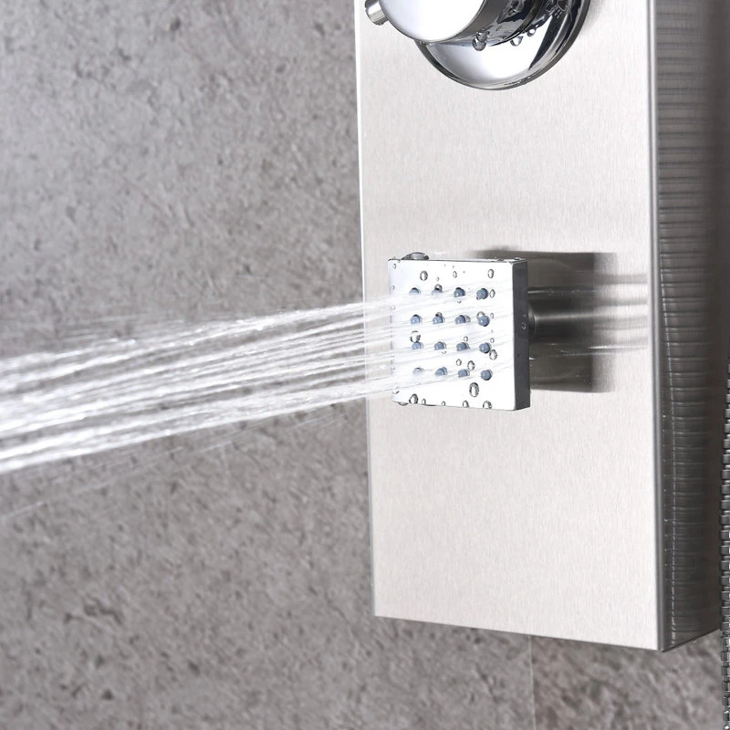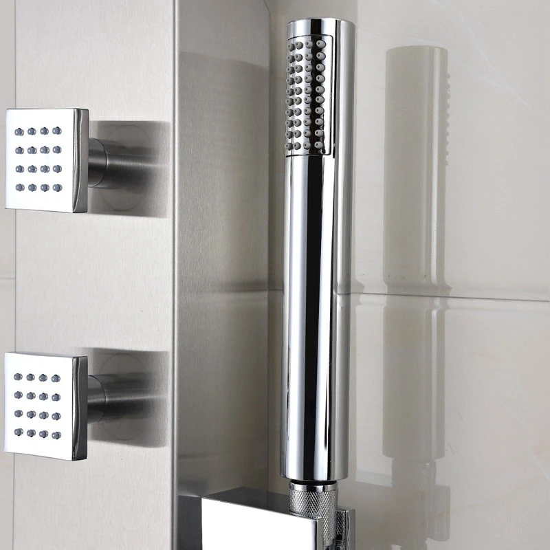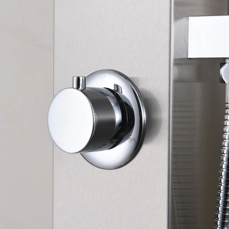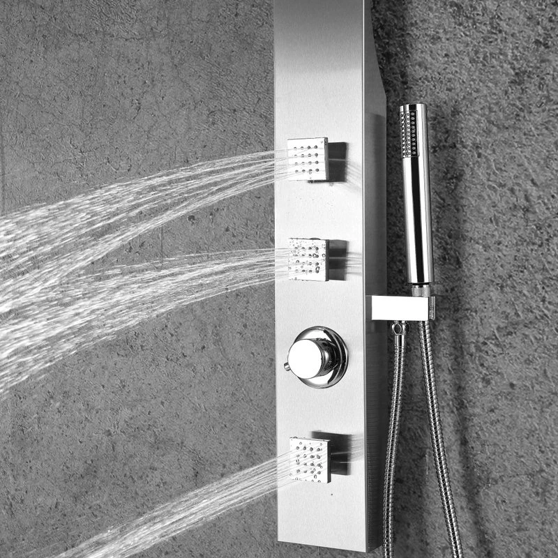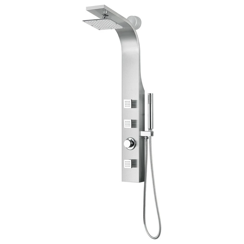 The ANZZI full body SANS shower panel features a modern laser cut brushed 304 stainless steel body with 3Acu-Stream body jets providing a relaxing yet powerful water stream to massage the body. The Heavy Rain shower head hangs overhead releasing a steady torrent of soothing water from above. And always positioned at the column’s flank is the Euro-Grip hand held sprayer with free reign reach of up to 40inches. And everything is controlled through 1chrome thermostatic and diverter controls.