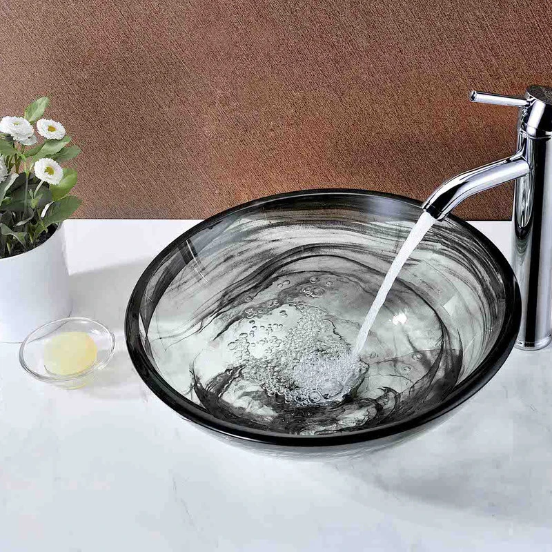 The ANZZI Verabue Series sink is a traditionally crafted round vessel sink adorned in slumber wisp finish. Each ANZZI vessel sink is formed using RHINO ALLOY certified high tempered Deco-Glass material. The result is a dynamically shaped and captivating vessel centerpiece for any bathroom counter.