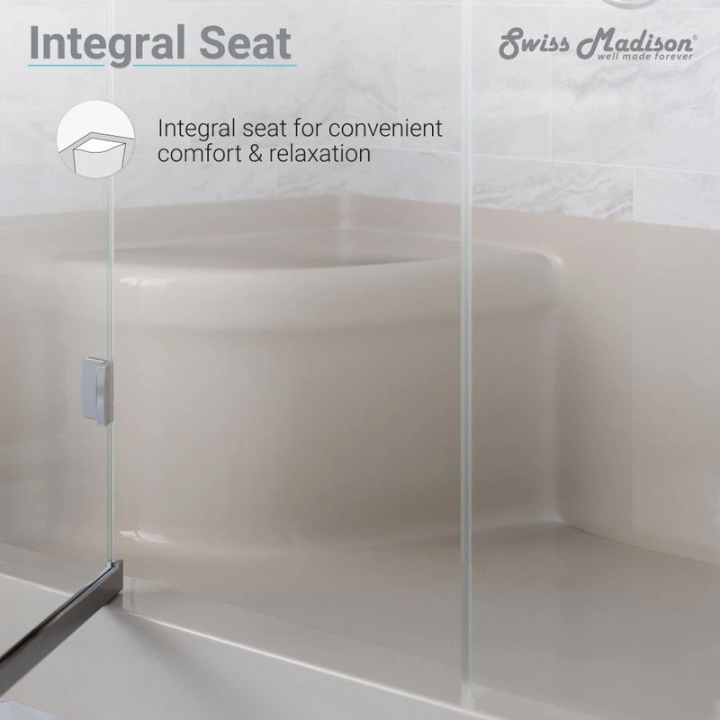 The Aquatique Threshold Shower Base is a powerful and stylish statement in any bathroom. Its practical design and low threshold provide easy access to the shower. The durable acrylic and fiberglass reinforcements make the shower base a robust selection. Equipped with a seat this shower provides comfort and secure footing for a luxurious experience.