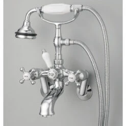 Deck Mount Gooseneck Tub Filler, Adjustable Spread, Brushed Nickel