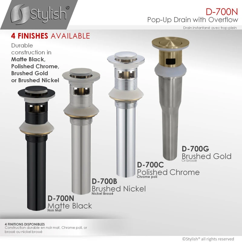 - This pop-up drain will prevent the sink from overflowing.