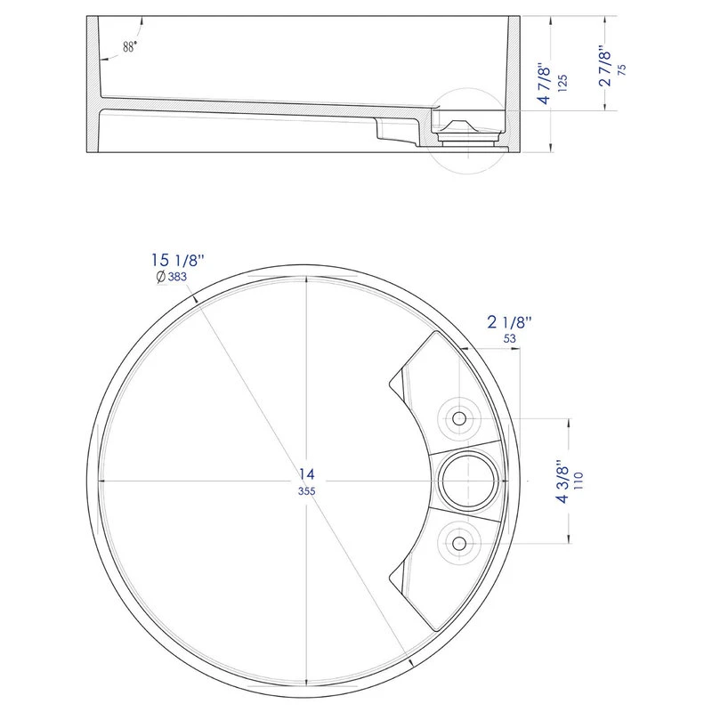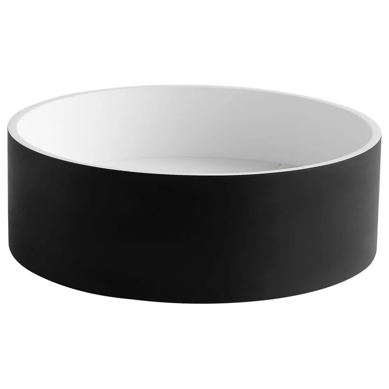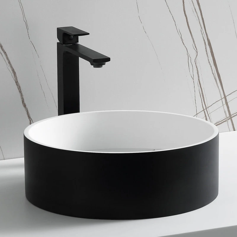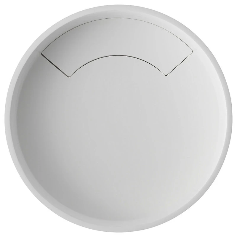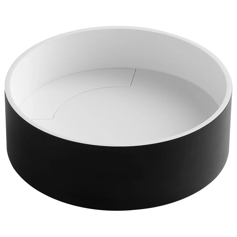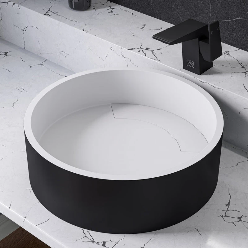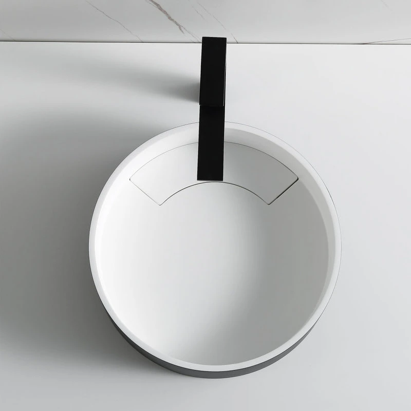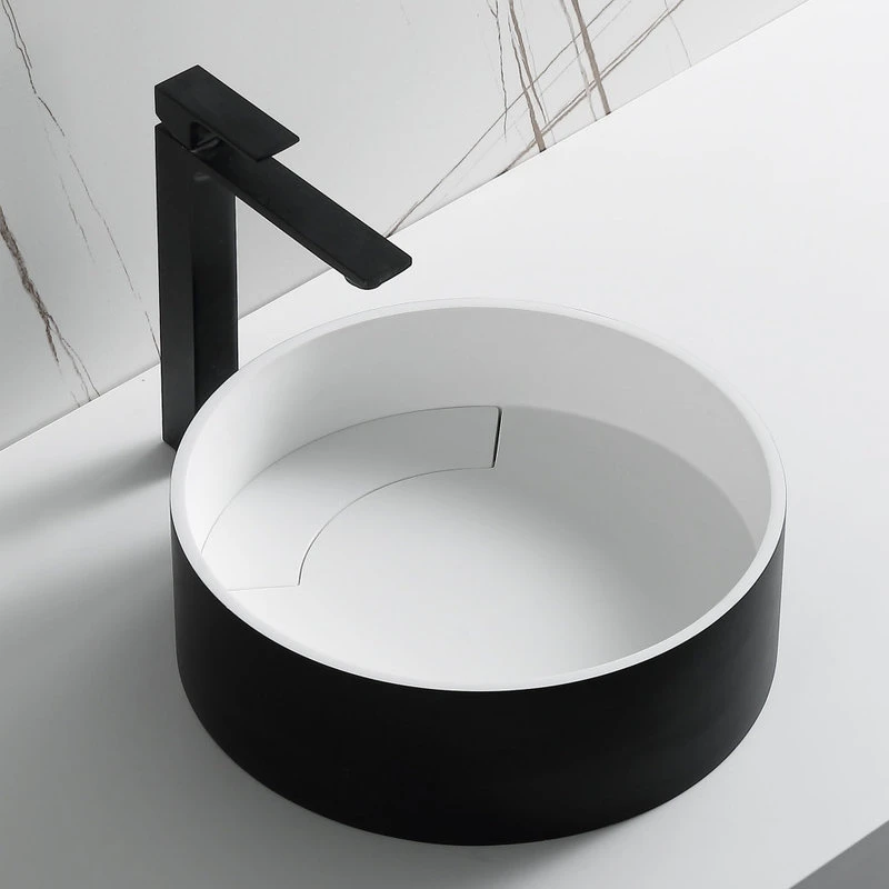 Upgrade your bathroom with this sleek modern round sink made of solid surface composite. It’s coolest feature is that the drain is completely concealed. It’s designed with a contemoprary flair in mind featuring it’s sharp corner radius and edges.