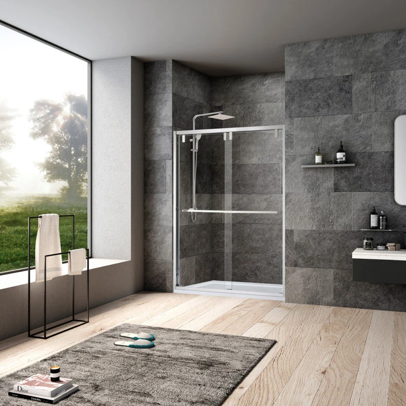 - Bypass door provides space-saving efficiency and a seamless, modern look for your standalone shower.