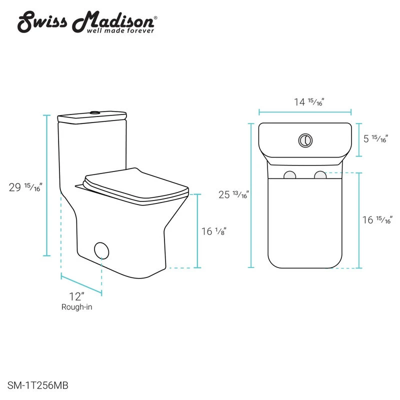 The Carré Matte Black One-piece Toilet possesses clean lines and fluid curves. Elegance is added to any bathroom given its graceful design, while the square bowl offers improved comfort. The eco-friendly dual flush will save significant amounts of water annually. When paired with our other fixtures from our Carré Matte Black collection a cohesive and highly personalized bathroom can be created.