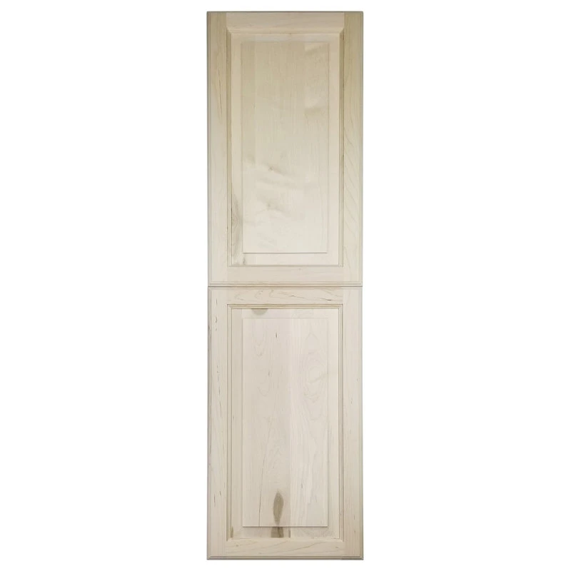 Perfect for any bathroom. Recesses in the wall between the studs, and simply screws to the studs on each side of the opening. Only the doors are outside the wall. Fully adjustable glass shelves inside. Our unique, patented design of shelf supports keeps each shelf in place. Concealed hinges with soft close built in assures the door will never slam shut, but softly close on its own instead. Box is SOLID pine and the Raised Panel style door is SOLID maple. We’ve painted the inside of the box white, so you don’t have to! Unfinished door can be painted or stained. The box is 3.5″ deep inside and gives you plenty of usable depth, but fits in standard 2×4 walls. This model has TWO doors which open to reveal two separate cabinet sections. Cabinet box is 12.5″ wide inside. Doors are reversible to open either Left or Right. Completely assembled! All you need to do is put one screw in each hinge to mount the door. Then insert it in the wall and screw it to the studs with included screws. If you are replacing a current cabinet, measure your wall opening! White plastic trim surround covers the rough edges of your opening up to 1/2″ all around. Doors cover the trim surround when closed so the only thing you see outside the wall are the doors. Made in USA.