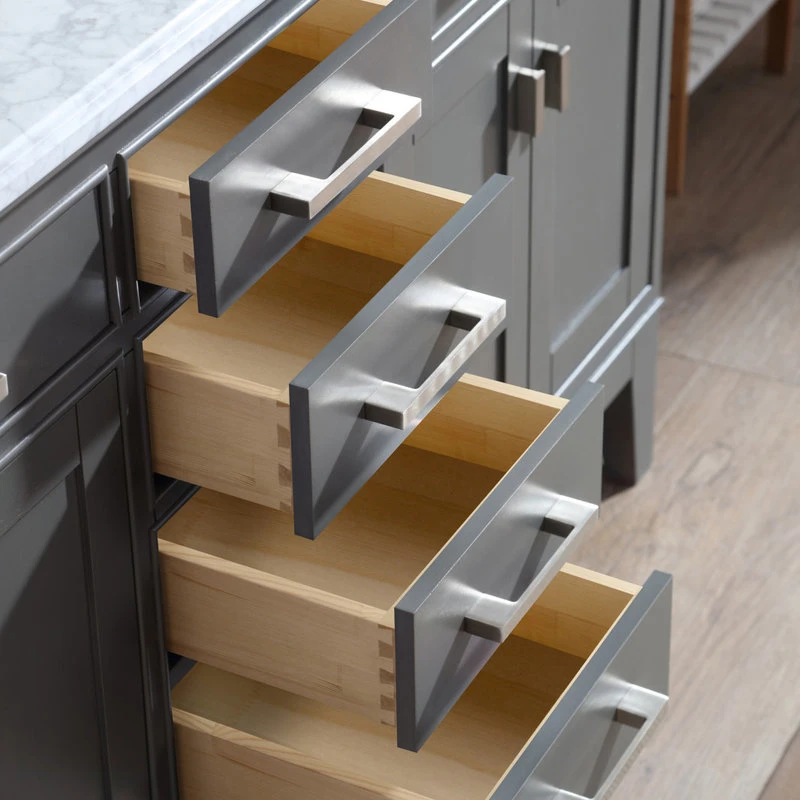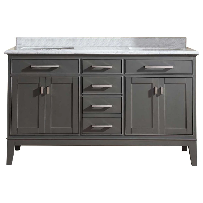 Your bathroom is arguably the most-frequented room in your home. It’s where you prep for the morning, wind down for the night and make several trips in between. With all these comings and goings, it should be as fashionable and functional as the rest of your busy spaces, if not more so. Enter the Danny Double Vanity. This piece offers all the style and utility you could ask for, with its deep gray finish, spacious Carrara marble top and generous amount of storage. Sleek, metal hardware and slightly flared legs are the cherry on top of a good design, giving the Danny the edge it needs to beat out the competition. The Danny pairs beautifully with contemporary, transitional and beach-style bathrooms.