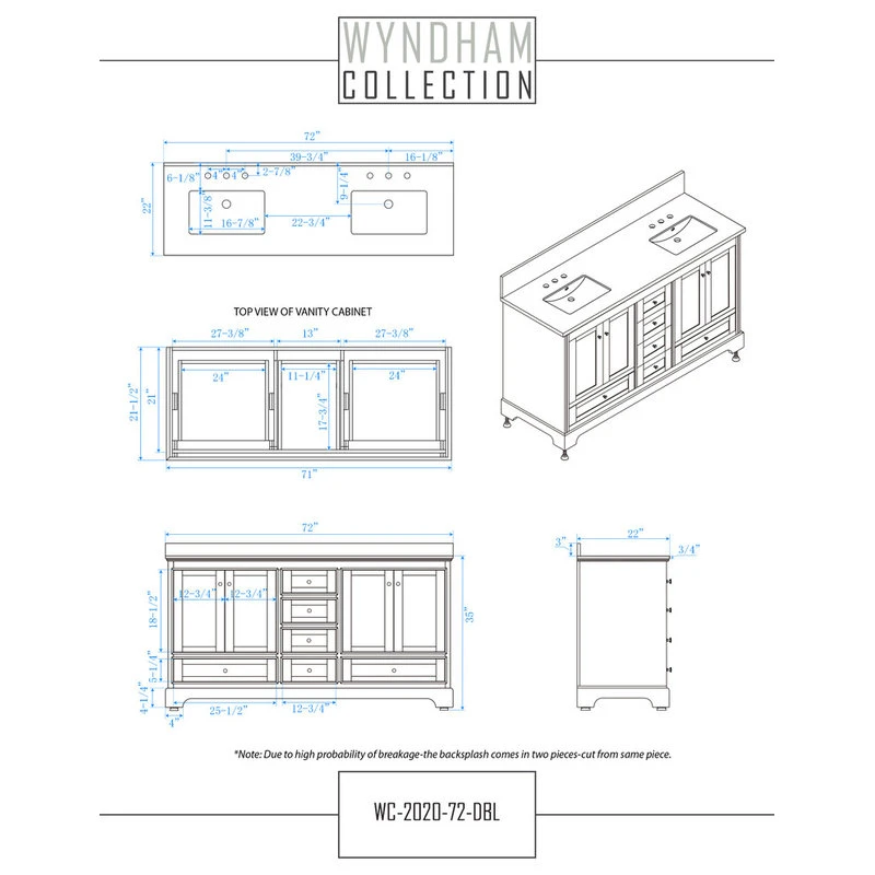 - Backsplash comes in two pieces (Cut from one single piece due to high probability of breakage)