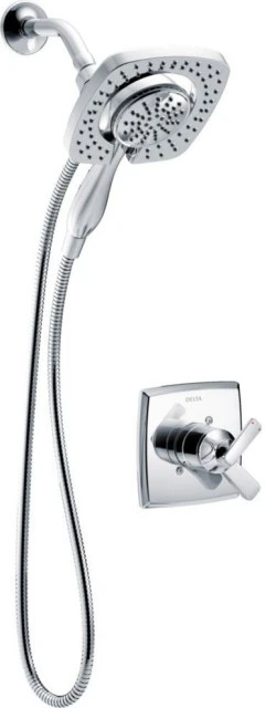The Delta� In2ition� Two-in-One Shower features a detachable hand shower which can be used separately from or simultaneously with the shower head. This integrated dual-functionality gives you maximum flexibility without sacrificing warmth, as you can choose to have water streaming from the shower head only, the hand shower only or both the shower head and hand shower at once. With separate handles for volume and temperature control, this Delta tub/shower provides a more refined showering experience. Simply set the water at your preferred temperature and turn the shower on or off with the volume control handle – without interrupting your set temperature. While other products may gather unsightly mineral build-up over time, Delta soft rubber Touch-Clean� spray holes allow any mineral residue to simply be wiped away for an instantly refreshed look � with no need for soaking or the aid of chemical cleaners. The pause setting gives you ample space for shaving, lathering and other shower tasks, then easily restarts the water with the temperature where you left off. This spray setting helps you conserve water, so you can worry less about depleting your supply of hot water – and you help the environment too. Delta� pressure-balance valves use Monitor� Technology to protect you and your family from sudden temperature changes. Chrome has rapidly become one of the most popular finishes across d�cor styles in the bath thanks to its stunning gloss and innate versatility. Paired with crisp lines and bright whites, it creates a bold, modern contrast, but it works equally well with vintage styles and traditional spaces to convey a hint of nostalgia. Delta WaterSense labeled faucets, showers and toilets use at least 20% less water than the industry standard�saving you money without compromising performance.