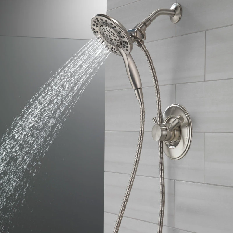 - In2ition™ 2-in-1 Hand Showers: Delta In2ition™ showers provide the flexibility of a hand shower without the extra upfront costs or lost ease-of-use. With a simple flip of the diverter lever, the detachable hand shower can be run separate from, or simultaneously with, the shower head. In2ition™ showers also offer multiple spray settings, including a pause feature which helps you conserve water.