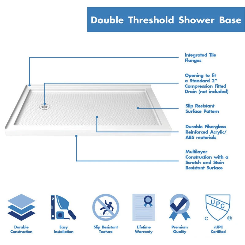 The DreamLine SlimLine shower bases showcase premium high-gloss acrylic, reinforced with fiberglass for durability and a modern, low profile design. SlipGrip textured floor surface offers slip resistance for safety. Glossy acrylic finish safeguards against stains for easy maintenance. DreamLine SlimLine shower bases are available in multiple colors and are sure to complement your bathroom style!