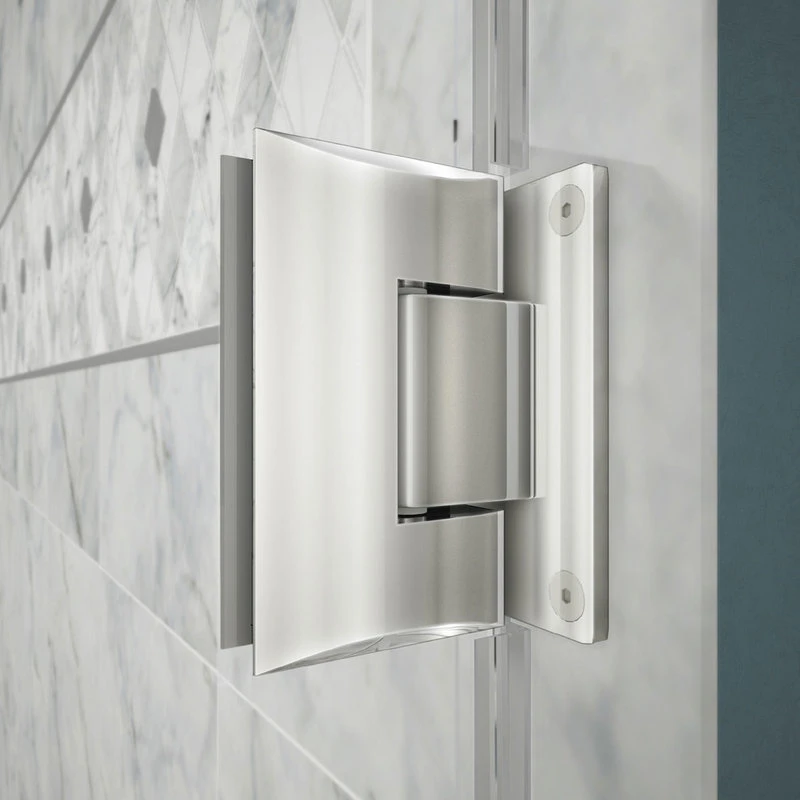 - Solid brass wall-to-glass self-closing hinges