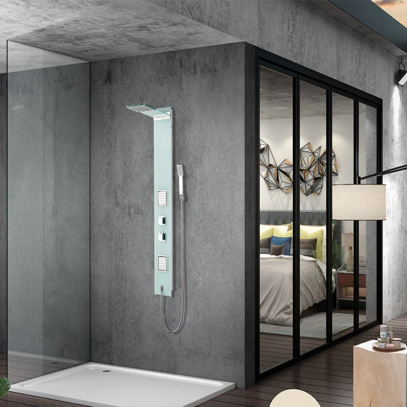 The Eviva Abruzzo Tempered Glass Thermostatic Shower Massage Panel can really take your morning cleaning routine to the next level! This model comes equipped with a large overhead monsoon style shower head, a handheld shower wand for mobility and hard to reach places and 2 adjustable body massage jets. The tempered glass finish adds a modern touch to any bathroom sanctuary!