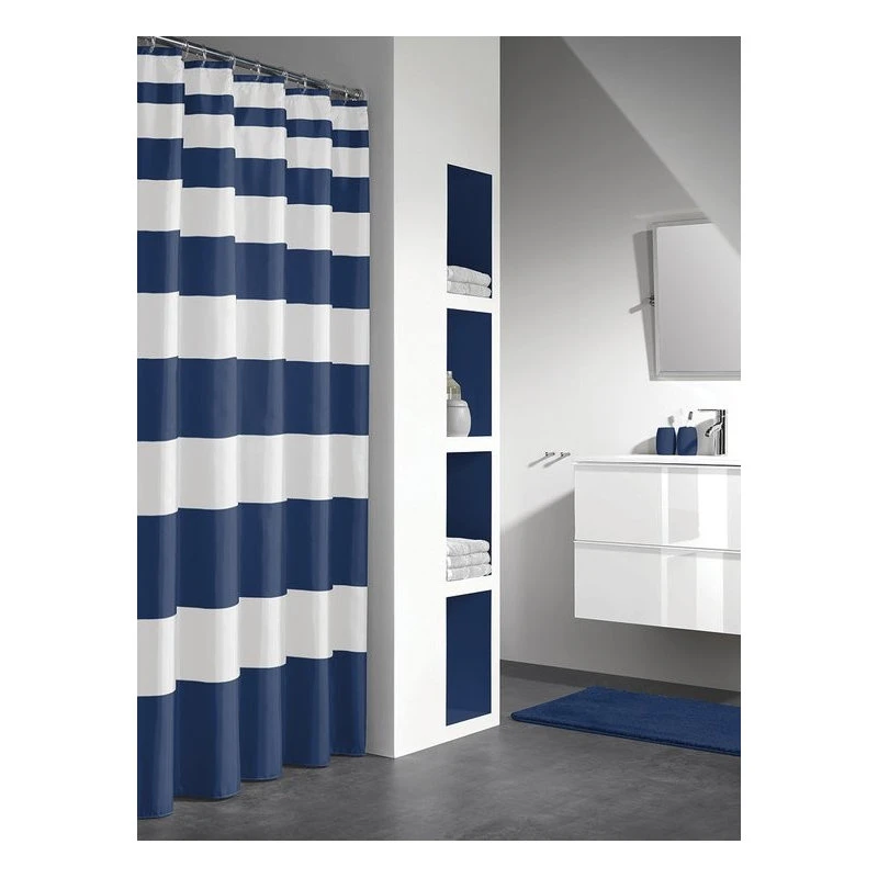 - Extra long luxury shower curtain Nautica Stripes Blue And White