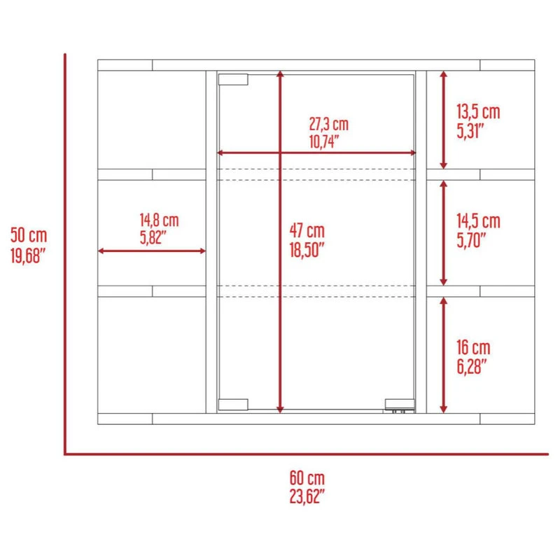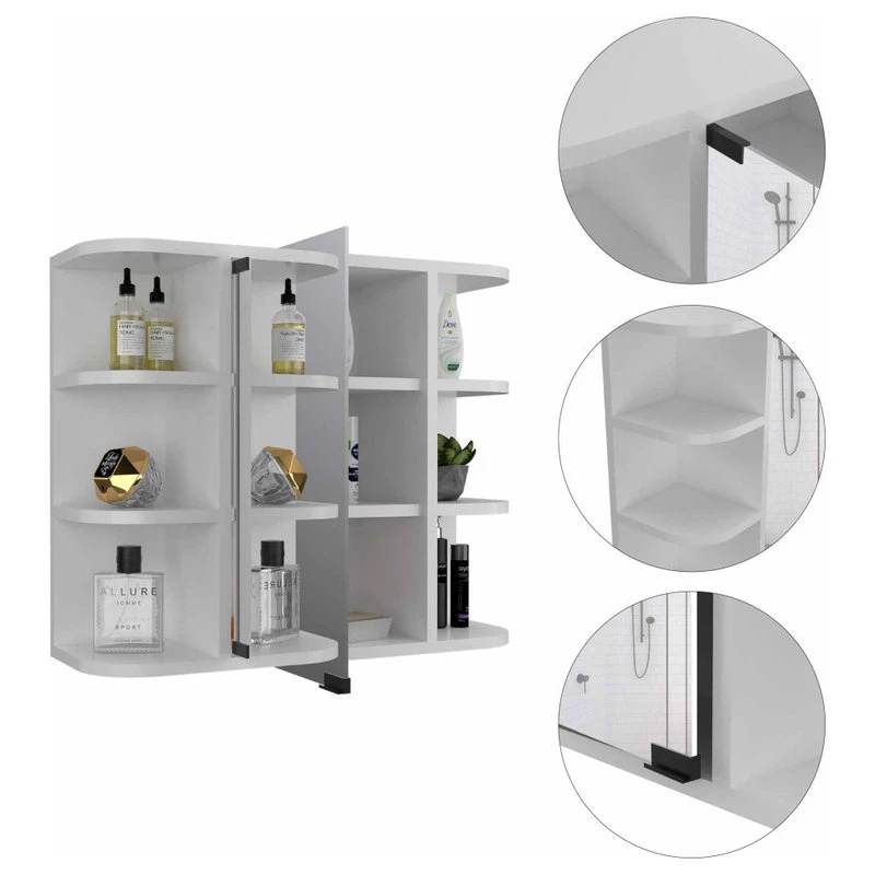You were designed to have plenty of very nice features, such as One central cabinet with a single mirrored door (10.4 W x 18.5 H), with three interior shelves that will allow you to store your medicines, lotions, shampoos, or any other product you regularly use.