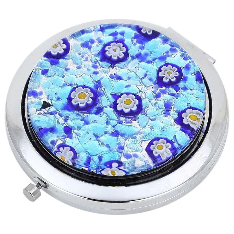 This beautiful Murano Glass makeup mirror is a perfect everyday Venetian accessory for any stylish woman. This compact mirror was created by experienced glass masters on Murano Island in the Venetian Lagoon entirely by hand following the techniques and traditions of the craft that go centuries back. With its rich colors, elegant design and quality craftsmanship, this mirror showcases everything Murano Glass is famous for in a stylish and unpretentious way. The sterling silver foil infused in the glass creates gentle shimmer giving this mirror its truly unique look. Grab this exquisite Venetian makeup mirror any time you are on-the-go, slip it into your purse, and get ready to hear compliments whenever you take it out. Or give this unique yet very practical gift from Venice to a special woman in your life.