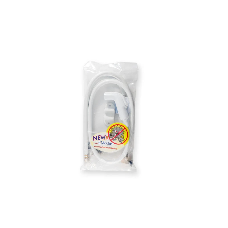 The Bidet Sprayer comes complete with all attachments needed to quickly and easily attach to a standard 3/8 inch compression water valve (valve behind toilet). Each unit comes packaged with a hand sprayer that is protected by Microban®; a flow control t-valve; 4 foot reinforced white NSF Approved PVC hose; built in check valve in sprayer (one way valve); step-by-step picture instructions; and a matching wall bracket including screws & plastic anchors. Each unit takes approximately 5-10 minutes to install when using a standard adjustable pliers. For your convenience, if you have a 1/2 inch connection, we sell a brass adapter and teflon tape which converts your water valve from 1/2 inch to 3/8 inch. PLEASE NOTE: Only 5% of homes in North America have the 1/2 inch connection.