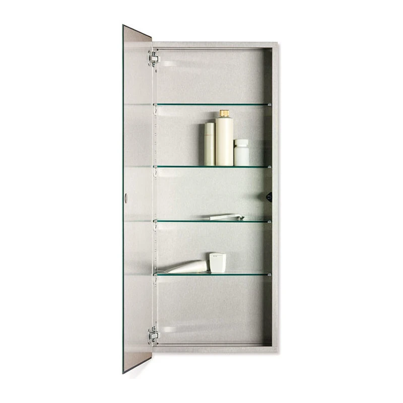 - Frameless Mirror door- 1/8in thick float glass mirror door front with polished edges (POL1), 22 gauge stainless steel door back