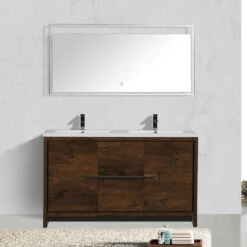 - Wood finished to prevent warping, cracking and withstand bathroom humidity levels