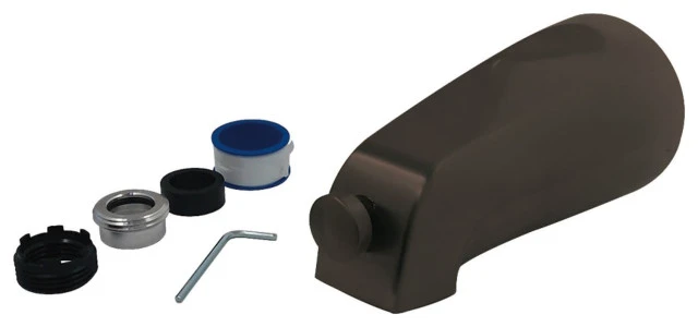 The sleek body and curved headpiece of this tub spout evokes a simplistic design, giving your bathroom a universal appeal. A featured diverter lever above the head enables water to switch its flow between the tub spout and the shower head. Choose from an array of finishes to coordinate with your bathroom ensemble.Kingston Brass K1288A Features:
