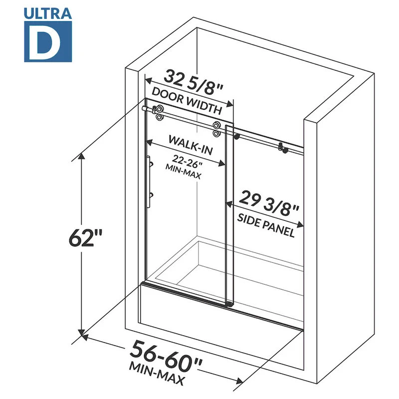 - Walk-in distance: 21 5/8-25 5/8 inches
