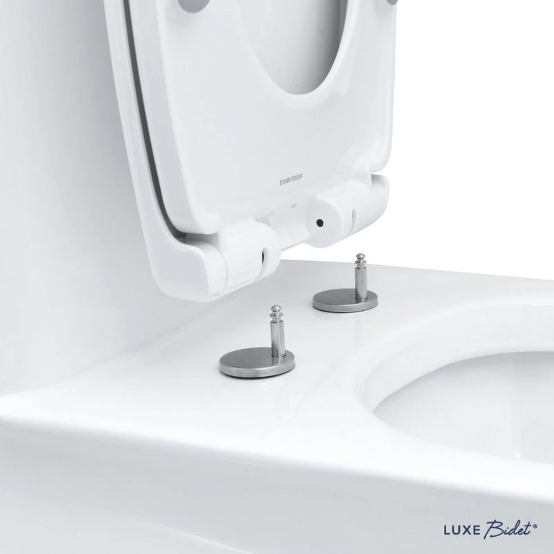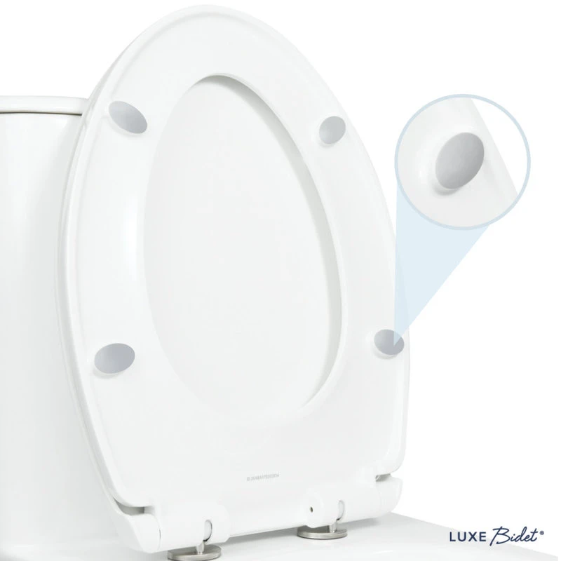 The LUXE Elongated Comfort Fit Toilet Seat is a toilet seat unlike anything else on the market. It fits seamlessly with any Luxe Bidet attachment and works with most standard round toilets. This toilet seat comes with all the parts needed for a quick and easy installation, along with additional parts allowing a perfect fit with any Luxe Bidet attachment. Quick-release hinges allow effortless removal and easy cleaning around the toilet seat and bidet. Our Elongated Comfort Fit Toilet Seat is made of high-quality, durable plastic and can withstand up to 300 lb. This toilet seat’s stainless-steel decorative covers and clean white color will give your bathroom a modern upgrade. The slow-close feature on this product provides a peaceful and quiet bathroom experience and prevents slamming. Non-slip bumpers prevent sliding and keep your toilet seat firmly in place during use. This toilet seat will fit beautifully on most standard round toilets and is contoured to sit perfectly on top of your Luxe Bidet toilet seat bidet attachment. Get your LUXE Elongated Comfort Fit Toilet seat now and immediately upgrade your bathroom experience!