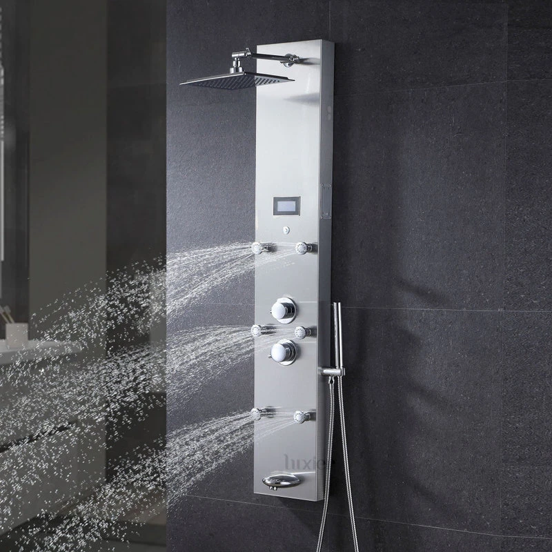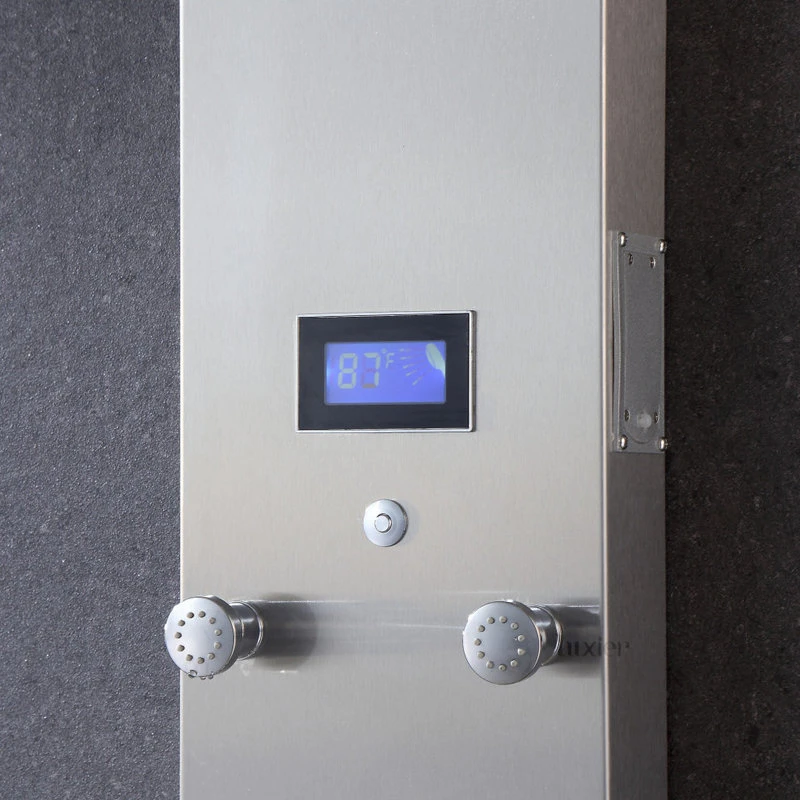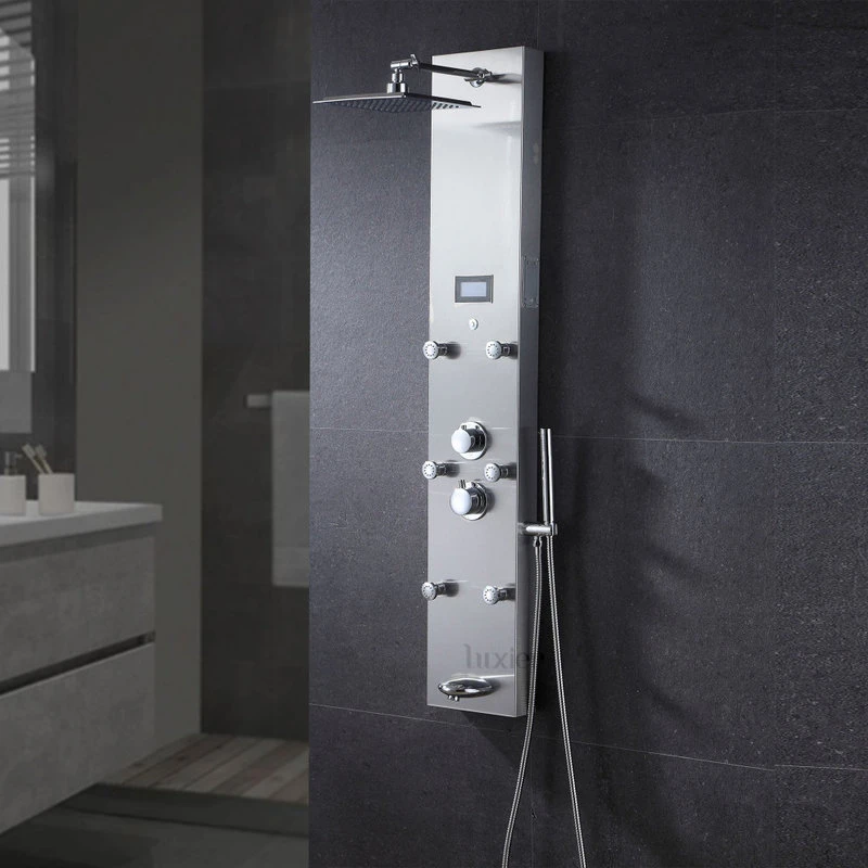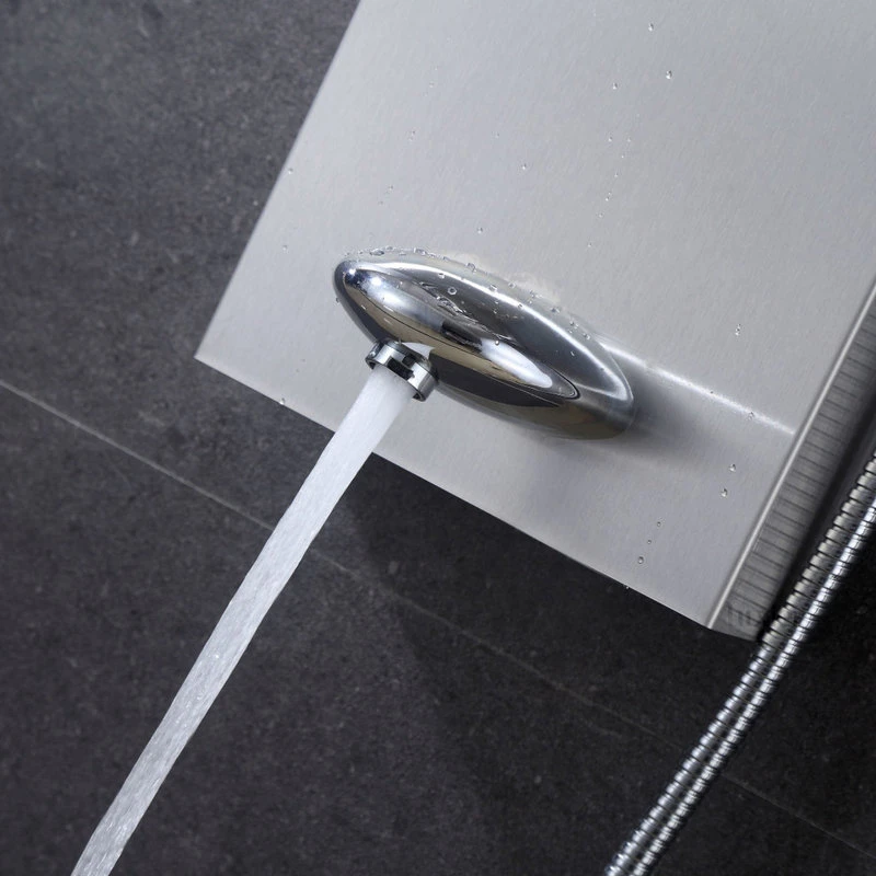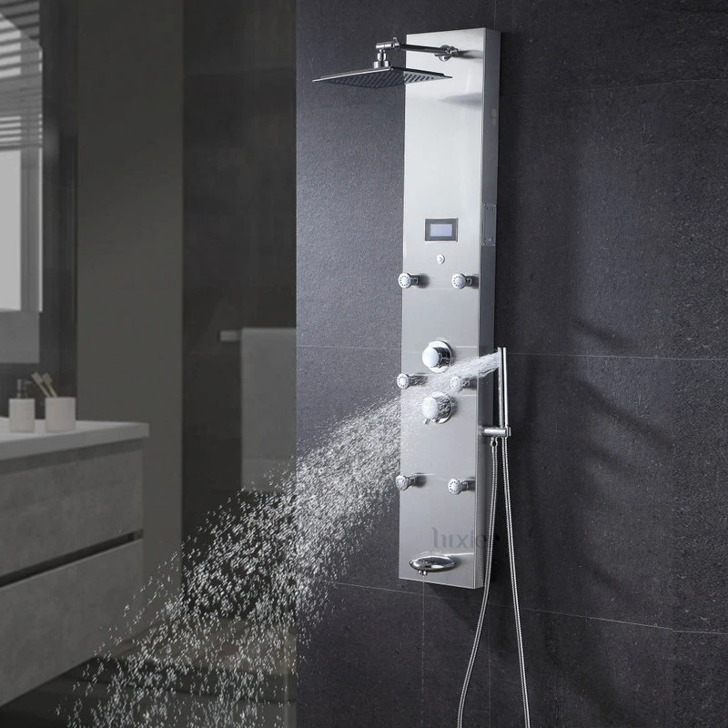 Introducing the SP34 shower panel, a luxury stainless steel shower panel with 8.5 in. rainfall shower head, 6 in. circular adjustable angle massage jets, tub spout and hand shower. Equipped with pressure-balance valve to minimize the chance of scald. Brought to you by luxier, the premium brand in European designed bathroom and kitchen hardwares. All luxier shower panels are backed by 2-years manufacturer warranty and customer support.