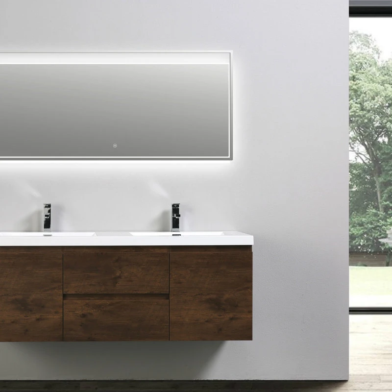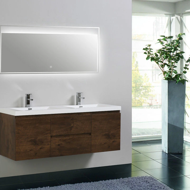 Streamline your bathroom routine with the sleek and stylish MOB vanity. This dual-basin piece is equipped with two drawers and a pair of cabinet doors that offer ample space to store and organize makeup, toiletries and other bathroom essentials in handsome fashion. A white integrated sink top adds a crisp contrast to the vanity’s rich brown cabinet, resulting in a look that is sharp and tailored and perfectly suited for your contemporary or modern design.