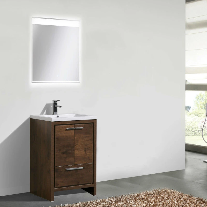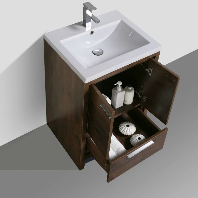 - Includes acrylic countertop with integrated sink and overflow, aluminum drawer handles and installation hardware
