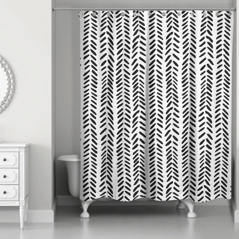SKU: 5387-P1 Categories: Bathroom Accessories, Shower Accessories Tags: Abstract, Bath, Bathroom, Black, Curtain, D�cor, Decoration, Drawn, Family, Fiber, Hand, Herringbone, Home, Pattern, Shower, Textile, White