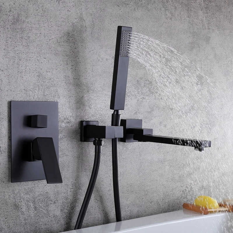 – A single handle to control temperature and volume, while a knob to divert water to either tub spout or hand shower.