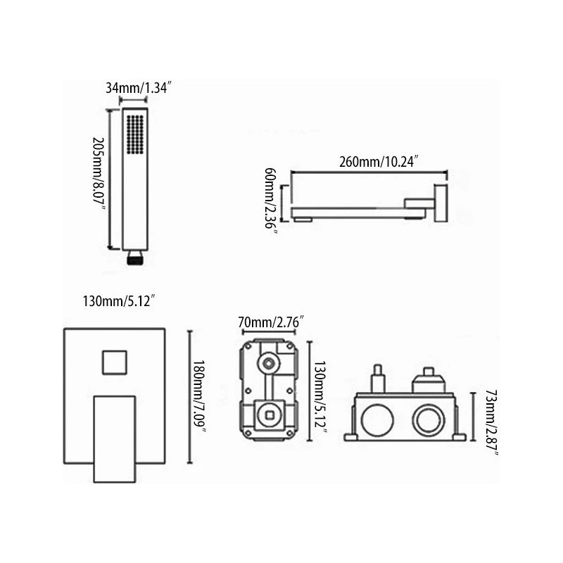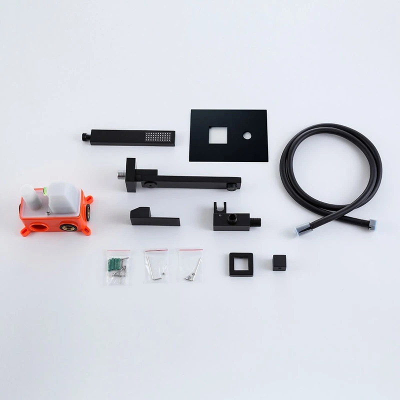 - Included Components: faucet spout, hand shower, handshower holder, mounting hardware, rough-in valve & trims, shower hose