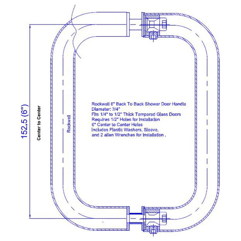 6″ Back to Back Glass Shower Door Handles without Metal Washers