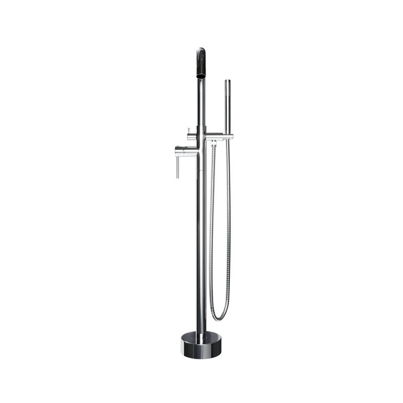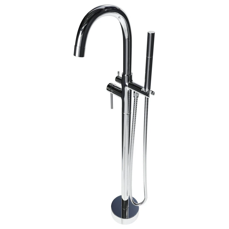 Enhance and complete your new freestanding or clawfoot tub with the beautiful Neptune Floor-Mounted Tub Filler. Constructed from durable solid brass, this tub filler is designed to resist corrosion and stay in prime shape for years to come. The smooth color and defined lines can give a wonderful complement or a striking contrast to your existing tub. The included handheld shower adds significant functionality, allowing you to rinse off yourself, a loved one, a pet, or even the tub itself with ease. The built-in diverter easily switches between the faucet and the handheld shower. A stunning addition to any freestanding bathtub or bathroom space.