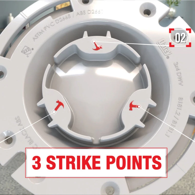 - Cleanbreak test cap minimizes knockout fall through and doesn’t shatter down the drain pipe