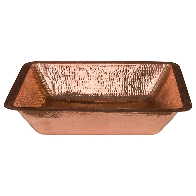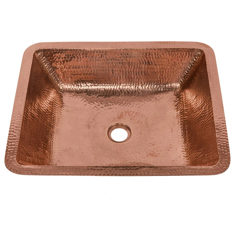 19″ Rectangle Under Counter Hammered Copper Bathroom Sink in Polished Copper Features: