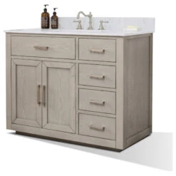 Grace 42″ Single Bathroom Vanity In Rich Antique Gray Oak With Carrara White Quartz Top
