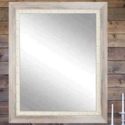 BrandtWorks Weathered Beach Wall Mirror With 3″ Wooden Frame – 32″ X 50″
