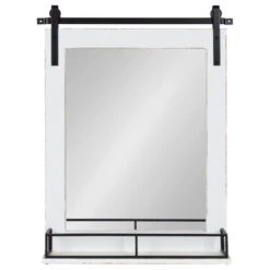 Cates Framed Wall Mirror With Shelf, White 24×31